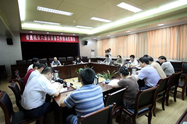 7月28日下午,省直工委召开省直机关六运会筹备工作情况汇报会,六运会组委会六部一室的负责同志参加了会议。省直工委书记、六运会组委会主任张国富出席会议并作重要讲话。会议由省直工委委员、巡视员、省直机关六运会组委会副主任王志军主持。