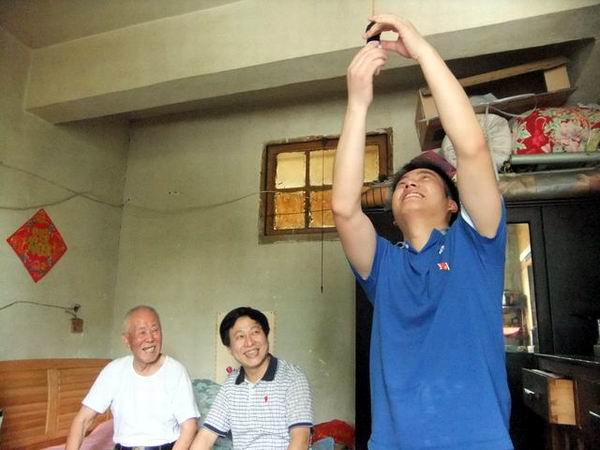 除了省电力公司的党员给老人带去党的温暖,省农村信用联社等9家省直单位同时开展了“送温暖献爱心”活动。党员每到一处敬老院,都热情地与老人们交谈、聊家常,了解他们的身体和生活情况。86岁的刘帮英老人听力不好,和她聊天的党员刘磊每一句话都要说上三四遍,才能让刘帮英老人听得到,但这一点都不妨碍他们之间快乐地沟通。“别看我听力不好,我的眼力可好了,我能看得清你帽子上绣的字呢。”刘帮英老人说着便一字一句读出来,引起满堂喝彩,阵阵掌声。