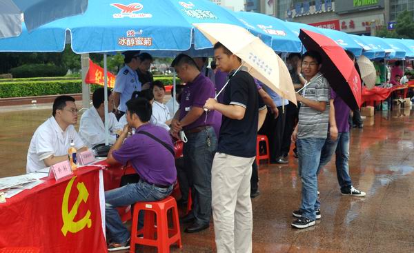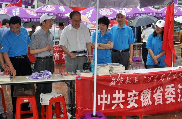 6月25日上午8点,一朵朵雨棚在细雨霏霏中撑起,省直机关近千名党员走上合肥市长江路街头和老市府广场,开展健康体检、医疗咨询、家电维修、科普宣传、职工维权等多项便民服务活动。