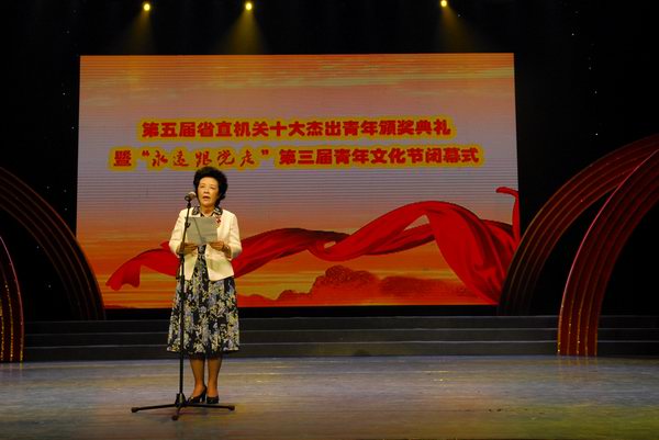 9月28日下午,由省直团工委、省直青联主办的第五届省直机关十大杰出青年颁奖典礼暨“永远跟党走”第三届青年文化节闭幕式在安徽艺术剧场隆重举行。省人大常委会副主任朱维芳,省政府副省长谢广祥、省委副秘书长沈干、省人大副秘书长王晓林、省委宣传部副部长郎涛、省直工委书记张国富、省委办公厅副主任徐飞、省政府办公厅党组成员巡视员余华柱、省政府参事室主任邱江辉 、团省委副书记汪华东、省高级人民法院副院长石德和安徽广播电视台党委书记、台长、总编辑张苏洲等领导出席活动并为获奖集体和个人颁奖。省直工委委员、巡视员王志军代表省直工委发表了热情洋溢的致辞。
