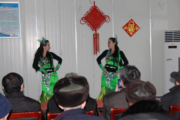 上午10时许,随着磨店敬老院阵阵动感音乐,安徽广播影视职业技术学院的一对双胞胎姐妹志愿者正翩翩起舞,婀娜的舞姿,真情投入的表演,舞蹈《天下无双》让在场的老人们大饱眼福,欢呼声、叫好声此起彼伏。