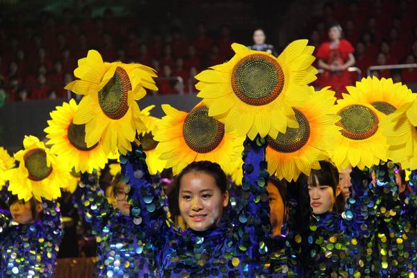 朵朵葵花向太阳,首首颂歌献给党。10月25日,“颂歌献给党”——省直机关迎接十八大文艺演出在省体育馆隆重举行。省党政军领导张宝顺、李斌、孙金龙、王宾宜、王炯、唐承沛、沈素琍、曹征海、臧世凯、文海英、胡连松、赵韩、贺海涛以及省长助理邵国荷等出席并观看演出。