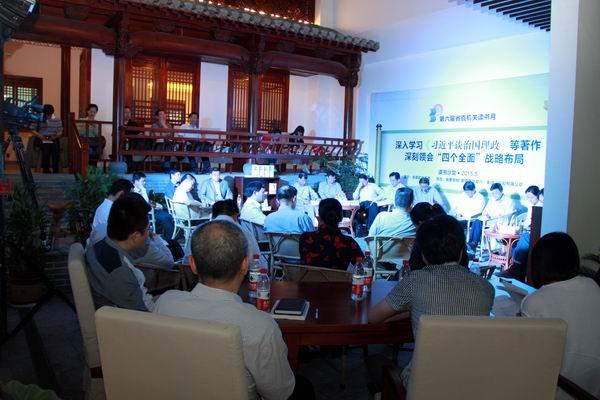 此次沙龙,围绕“深入学习《习近平谈治国理政》等著作,深刻领会‘四个全面’战略布局”主题,安徽大学裴德海教授、省委党校胡东升教授分别从理论上阐释了“四个全面”思想是党的十八大以来马克思主义中国化的最新成果、是坚持和发展中国特色社会主义的战略布局。省财政厅党组成员、副厅长朱长才,省发改委党组成员、总工程师笪艺武,省政府法制办副巡视员陈一胜,省纪委(监察厅)副厅级纪律检查员、监察专员席庆锁结合实际,分别就全面建成小康社会、全面深化改革、全面依法治国、全面从严治党四个专题,现场分享了学习心得体会,交流了如何深刻领会“四个全面”战略布局并结合安徽实际贯彻落实。省直读书会会员代表就“提倡弘扬优秀传统文化与当前‘四个全面’战略布局的内在深刻联系”、“安徽全面建成小康社会的时间表与路线图”等话题,现场与领导、专家们进行了互动。安徽行政学院张超教授主持沙龙活动。省委党校校委委员、教育长胡忠明致欢迎辞。安徽新华传媒股份有限公司董事长王焕然介绍了省直机关读书会阅读基地有关情况。省直工委副书记郭德成对此次活动进行了点评。