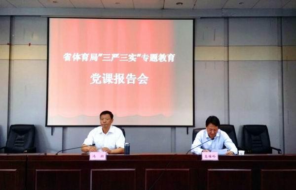 5月25日上午,省体育局“三严三实”专题教育党课报告会在局科技报告厅举行。局党组书记、局长冯潮以《领导干部当以“三严三实”为人生标尺》为题作了专题党课报告,机关党委书记高维岭主持会议,局领导、局机关全体人员、局直属单位领导班子成员和党务工作人员、各基层党支部书记120余人参加了会议。
