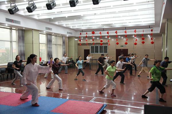 省直工委机关太极拳培训班于7月14日在省妇联大厦活动中心开班,工委书记张国富和机关20余名太极拳爱好者一起参加培训。培训班由机关党委、省直工会联合主办,特邀省一级武术师、合肥市武术协会会员、教练员何桂英老师担任教练。