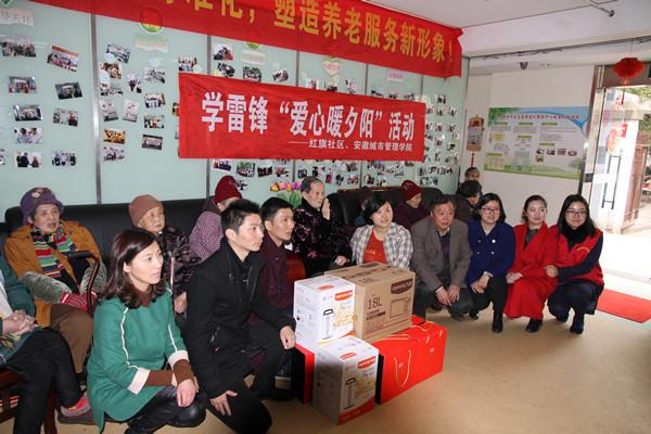 3月4日上午,与逍遥津街道红旗社居委合作,由省直工委直属机关团委和安徽城市管理职业学院团委共同组织的学雷锋“爱心暖夕阳”志愿活动走进乐年逍遥津老人服务中心,为老人们送去温暖。