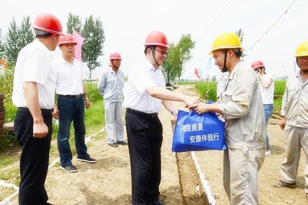 随后,钱桂仑来到钻机作业现场,关切询问职工生产生活情况,叮嘱他们保重身体、抓好安全生产,并为钻机工人们一一发放防暑降温物品。