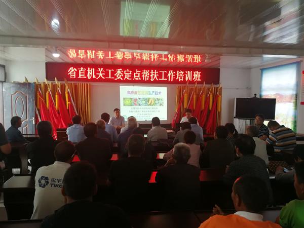 2018年9月10日,省直机关工委在泗县李庙村党员活动中心进行党员和贫困户培训工作,泗县李庙村、屏西村部分党员、贫困户、种植大户60余人参加了培训。省直机关工委副书记朱宗庄围绕“党建+扶贫”主题作了党课报告。