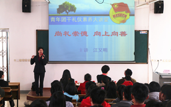 江又明教授以“尚礼崇德,向上向善”为题,从礼仪概述、个人形象设计、日常沟通礼仪三个方面解读“不学礼无以立”的经典内涵,讲授青年团干礼仪素养与行为规范,提出团员团干在学习、工作和生活中应“学礼有道、施礼有度”,提升礼仪素养,代言组织形象。江教授在讲课中通过情景模拟、案例分享等形式与学生交流互动,课堂气氛活跃。