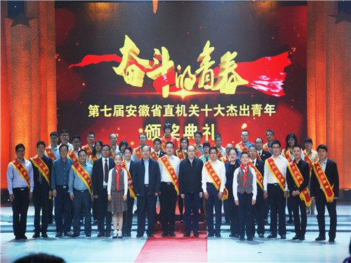 省直团工委书记、省直青联主席王永娟宣读了《关于表彰第七届省直机关十大杰出青年的决定》。来自合肥市六安路小学两名少先队员以《长大后,要像你们一样……》为题献词,表达他们对十大杰出青年的崇敬之情,并发出了响亮的誓言。舞蹈《以青春的名义》、歌伴舞《我们的美好时代》引起观众热烈的掌声。现场还对20名优秀青年进行了颁奖。伴随着《中国梦在你我心中》的优美歌声,颁奖典礼徐徐落下帷幕。