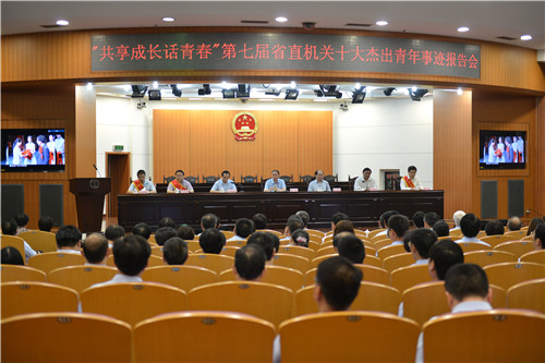 5月26日,“共享成长话青春”第七届省直机关十大杰出青年首场事迹报告会在省高院举行。省高院党组书记、院长张坚,省直机关工委书记钱桂仑出席会议并作重要讲话,会议由省高院党组副书记、副院长石德和主持。省直机关工委副书记郭德成和省高院汪沪平、汪利民、周榕、徐致平、张兵、董震、袁春等领导出席会议。省直团工委负责人、省直部分单位团委书记、省直青联委员代表和省高院干警400余人参加了报告会。