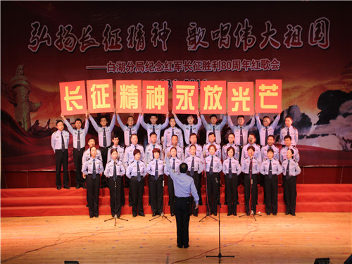 10月20日,白湖分局在白湖影剧院举行庆祝红军长征80周年红歌会。红歌会以“弘扬长征精神、歌唱伟大祖国”为主题,旨在引领广大民警职工深情回顾党的奋斗历史,热情讴歌党的光辉业绩,继承和发扬党的光荣传统和优良作风,进一步增强基层党组织的凝聚力和战斗力。