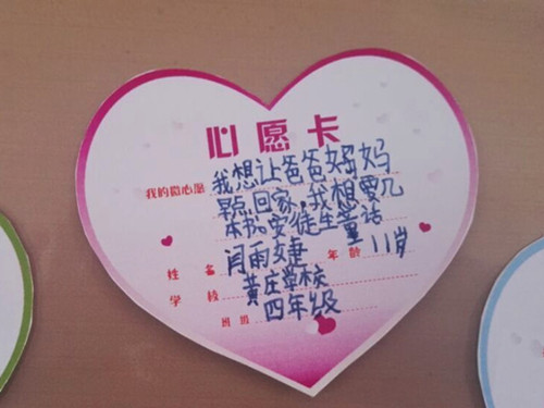 在黄庄小学,大唐安徽的团干和青年志愿者为30名留守儿童送来了心仪的文具、书本、玩具和大礼包,并与孩子们亲切交流,详细了解他们的学习、生活情况,倾听他们的心声,鼓励孩子们要克服困难,努力学习,用优异的成绩回报学校和父母的付出。在填写心愿卡环节,“我的心愿是让爸爸妈妈能经常回来看看我。”“我想早点考上大学,爸爸妈妈就不用那么辛苦了。”看着孩子们纯真的面庞,稚嫩的声音说出自己的心愿时,团干和志愿者们被深深感动了,他们将孩子们的心愿卡妥善保管好,并尽最大努力帮助他们实现每一个愿望。活动现场还开展了互动游戏,团干和青年志愿者与孩子们共同度过了一段温馨愉快的时光。