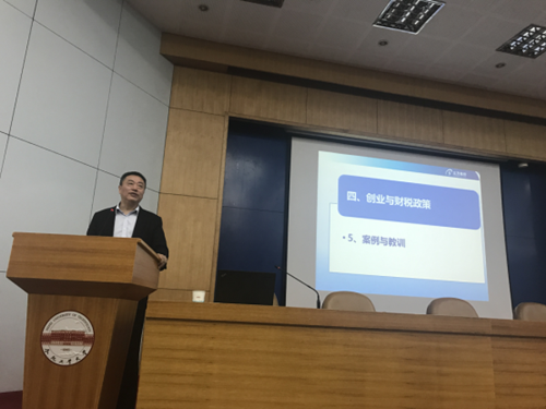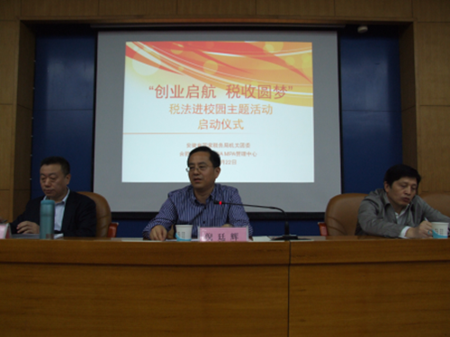 倪廷辉在活动启动仪式作重要讲话,他指出,创新创业是社会进步的永恒动力,青年是创业创新的生力军,鼓励即将毕业的大学生们要胸怀梦想,将个人追求的“小目标”与国家富强、民族复兴的“大目标”紧密结合起来,勇于创业,敢闯敢干,做创造新业态、探索新模式的领军先锋。建议大学生们在投身创业创新的道路上有计划地学习税收政策,从“税收政策有减有加,提升百姓幸福感”;“税收政策有奖有限,保护青山绿水”;“税收政策有情有义,为创业创新加把劲”三个方面,深入浅出的介绍了税收在助力创业创新方面发挥的助力和引导作用,并叮嘱大学生们在创业的同时亦要牢固树立依法诚信纳税的意识。