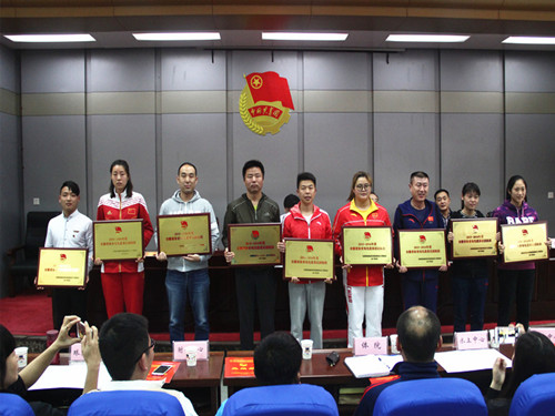 大会在雄壮的国歌声中拉开序幕。张力兴同志宣读了局直属机关团工委《关于表彰2015-2016年度安徽省体育局先进基层团组织、优秀共青团员和优秀共青团干部的决定》,17个团组织被评为先进基层团组织、114名同志被评为优秀共青团员、50名同志被评为优秀共青团干部。会上通报了局系统获团中央和省直团工委表彰情况。省重竞技运动管理中心团总支被评为2016年度省直机关“五四红旗团总支”,省武术套路队被命名为2016年度省直机关“青年文明号”,省射击运动管理中心甘宇、省体操击剑运动管理中心方国庆和安徽体育运动职业技术学院郭家畅、梁雨合、陆海峰5名同志被评为2015-2016年度省直机关“优秀共青团员”,省体科所陈炜、安徽体育运动职业技术学院李珊珊2名同志被评为2015-2016年度省直机关“优秀共青团干部”,省体育中心王玮同志被评为2015-2016年度省直机关“青年岗位能手”。经省直团工委和团省委审核、推荐,省水上运动管理中心运动员程勋满同志日前被团中央评为“全国优秀共青团员”。去年以来,局系统共有12人次、2个单位(团队)获团中央、团省委和省直团工委表彰。会上,举行了颁奖仪式。