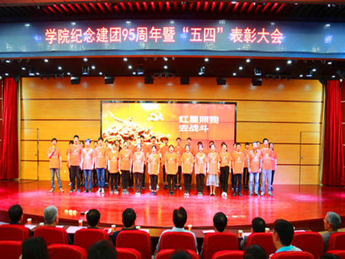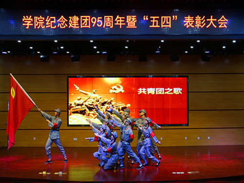 院学生组织表演了歌舞《共青团员之歌》《年轻的战场》《红星照我去战斗》及朗诵《我骄傲我是中国人》。他们高喊着青春的誓言,用行动传递“砺志、敬业、致能、强体”的校训精神,用歌声展现“在锻炼中成长、在奉献中闪光”的追梦情怀。整齐舞动的旗帜、浑厚激昂的歌声、铿锵有力的朗诵,感染和激励着现场的每一位青年学子。会后团员青年们还观看了纪念建团95周年图片展。