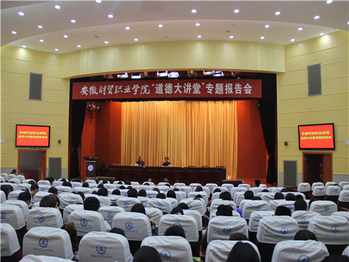 贸职业学院团委邀请安徽省人大办公厅退休干部、“中国好人”、“全国道德模范”、“拾荒主席”张景兰作先进事迹报告,传播正能量。学院部分团学干部及“中国特色社会主义理论学习研究会”会员350余人聆听了报告会。