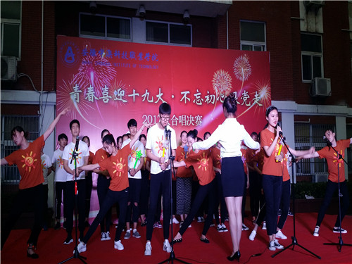 员”教育实践的通知》要求,由院团委主办的主题为“青春喜迎十九大 不忘初心跟党走”大合唱比赛决赛于6月7日晚6点在学府广场拉开帷幕,经过初赛角逐共有10支队伍进入总决赛。此次比赛邀请了组织人事处处长李钟、学生处处长车毅、信艺系党总支书记王晓光、国商系党总支书记顾晓梅、思政部卢继富老师、管理系副主任付丽丽、院团委书记欧阳杰和基础部许梦园老师担任评委。