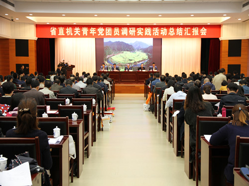 10月12日,省直机关青年党团员“走基层 访一线 服务五大发展行动”调研实践活动总结汇报会在省行政中心举行。省直机关工委书记钱桂仑、团省委书记李红以及团省委宣传部部长刘存磊出席会议并颁奖。会议由省直机关工委副书记郭德成主持。省直及中央驻皖各单位机关党组织专职副书记、团组织主要负责人、调研实践组组长、副组长,以及获奖单位、个人代表共240余人参加会议。