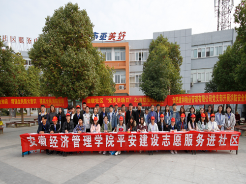 为贯彻落实综治工作会议精神,安徽行政学院(安徽经济管理学院团委)以 “119消防宣传日”为契机,组织院学生会、阳光社、创吧协会到结对共建单位蜀麓社区开展平安建设志愿服务活动。