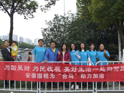 11月12日上午8时,2017合肥国际马拉松赛在滨湖国际会展中心激情开跑,来自国内外的28000名选手参赛。我局青年志愿者携手“国税跑团”积极参与比赛项目和赛事服务工作,展现了安徽国税充满活力、积极向上、不断进取、服务社会的良好形象。(安徽省国家税务局机关团委供稿)