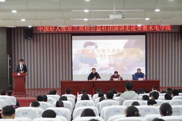 张景兰老人用质朴的语言、生动的事例讲述了近自已20年来捐助和动员机关同事共同资助皖南贫困山区女童、退休后拾荒资助贫困学子的感人故事,为到会的300名学子带来了一场震撼心灵的道德讲座。老人说:“我自己坚持不吃肉、不坐车、不买新衣服,竭尽全力去帮助更多的孩子背上书包,走进课堂,我最高兴的事就是看到自己资助的孩子考上了大学”、“我是一名老党员,党的根本宗旨就是全心全意为人民服务,我拾荒资助孩子们,就是尽了一名党员全心全意为人民服务的本分”。老人的质朴的语言中饱含了对党的忠诚、对祖国的热爱、对孩子们的关爱,她表示会继续用自己所有的时间和能量进行爱心传递,为社会多做贡献,并号召同学们从自身做起,用实际行动传递正能量,做一个品德高尚的人。
