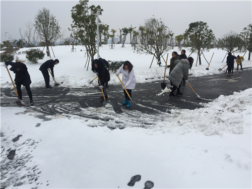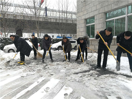 省高院广大青年干警积极响应号召,踊跃报名参加。滨湖办公区和五里墩办公区的青年志愿者分别行动,在冰天雪地中,他们的身影遍布办公楼周边、台阶及公共道路,凌冽的寒风把志愿者们的脸和手都冻得通红,但是大家热情丝毫不减,挥动铁锹,相互配合,热火朝天的忙碌身影形成了靓丽的风景线。天气寒冷,却暖意融融。1个小时的奋战后,青年志愿者们便将一条条干净整齐的道路呈现在眼前。