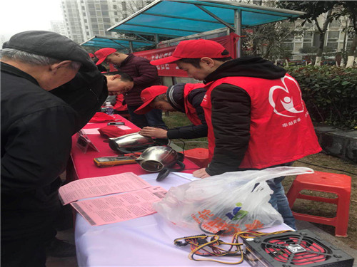 2018年3月3日上午,一片红色的海洋出现在合肥市方兴社区康园小区。“红海”,是“大爱电科”志愿服务团队“红马甲”展现的一道靓丽的风景线;“行动”,是所团委、资产采购党支部金辉、方巍等战士们“抄起家伙”——万用表、电烙铁、螺丝刀、焊枪……可谓是“真刀真枪”,向前来求助的居民们带来的电脑、电饭锅、电水壶等家用电器的故障发起总攻!值得一提的是,本次“红海行动”不仅有“真刀真枪”的“电磁战”,还打响了对家用电器故障的“舆论宣传战”。热管市场党支部的志愿者运用“为电子器件提供最适宜的温度”热管理、热防护及复叠制冷技术等专业优势,精心制作了电脑CPU和电暖气、电热锅、电热水器大功率电器散热、预防火灾及家用/汽车空调、电冰箱等温度调节、制冷类家电的使用、保养等宣传“小贴士”,并对前来咨询的居民做好讲解,提高居民保养家电、预防故障的意识和能力,做到“迨天之未阴雨,彻彼桑土,绸缪牖户”。