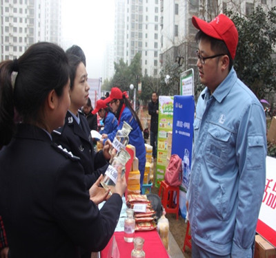 9点,中石化的展台前很快便围满了前来咨询的人群。“我的车以前加92#,现在想加95#,可以么?”、“石化的油品质量是保证的?”、“乙醇汽油有哪些特点?”、“乙醇汽油对环境保护有哪些积极作用?”。面对现场群众的提问,安徽公司青年志愿者合肥油库化验中心技术员魏涛从油品加工工艺、储存运输及检验方法、成品油特性等方面做了详细的说明,答疑解惑,宣讲中石化油品的优良品质。不仅如此,魏涛还邀请大家现场进行油品对比,介绍分辨油品质量的方法,使广大客户真实地感受到“每一滴油都是承诺”。