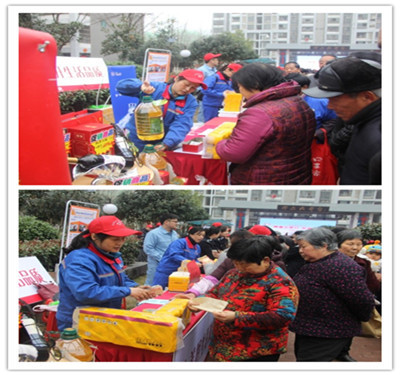 展台的另一端,质优价惠的易捷商品很快便受到现场群众的青睐,大家你一提,我一桶,他一瓶,好不热闹,热门商品更是多次补货才满足了大家的需求。