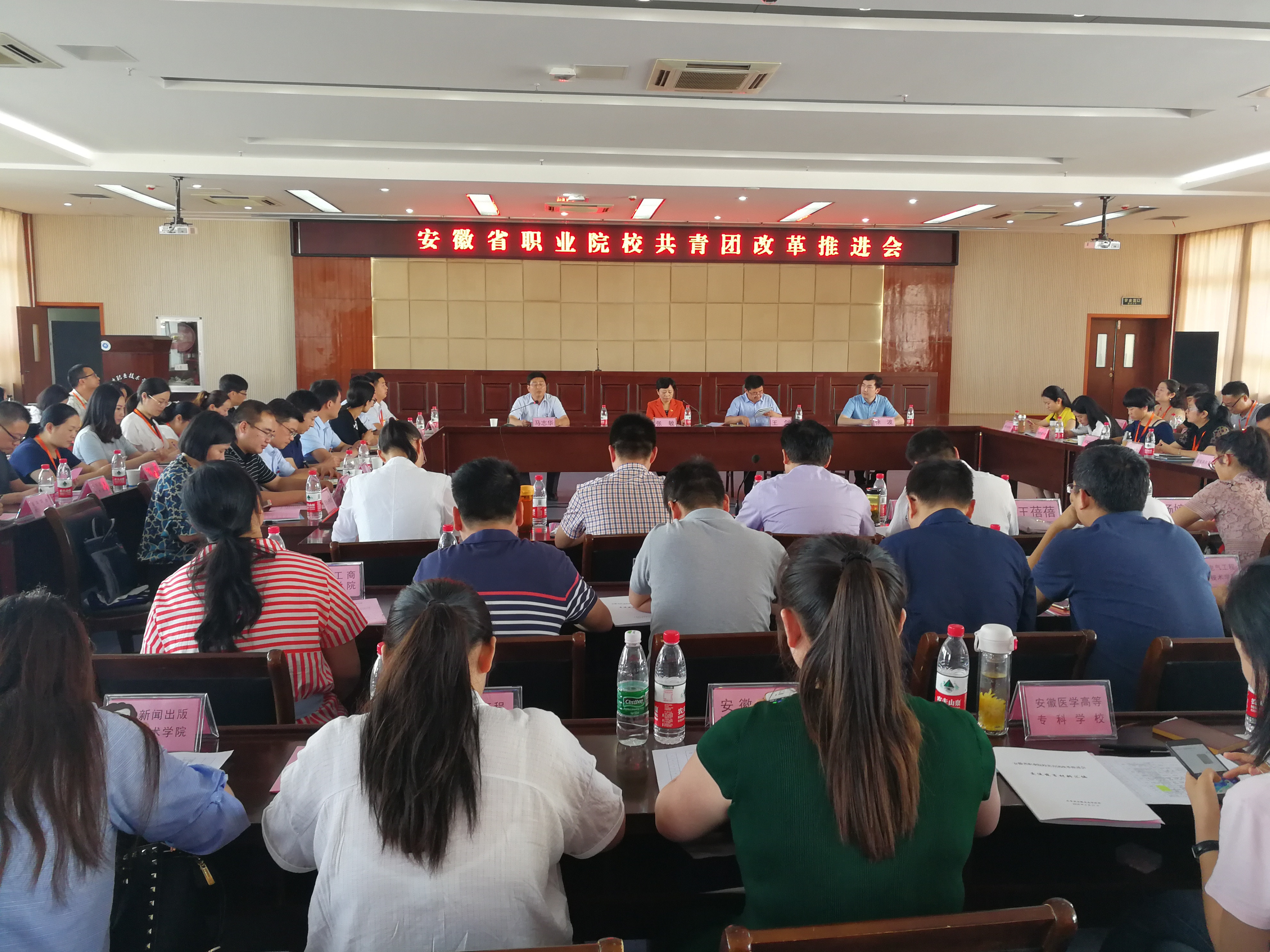 6月11日下午,全省职业院校共青团改革推进会在滁州职业技术学院召开。会议由团省委学校部副部长马志华主持,团省委副书记张敏出席会议并讲话,团中央学校部职业院校处处长王剑参加会议并作辅导报告。各地市团委分管负责同志,参加2018“挑战杯——彩虹人生”安徽省职业学校创新创效创业大赛的70多所职业学校(技工院校)团委书记参加会议。安徽中澳科技职业学院团委书记欧阳杰参加会议并做经验交流。