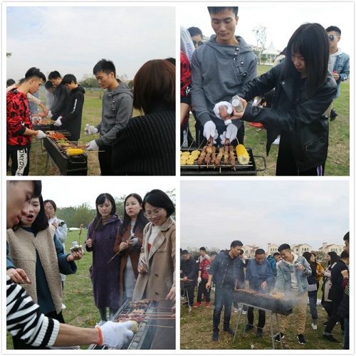 作为联谊活动的一个重要环节,这次午餐采取的是自助烧烤的方式,“我帮你”——面对不大熟悉烧烤流程的女生,男生们自告奋勇地当起了“烧烤大厨”,省高院的黄凯、方朋朋烤起串来严肃认真,不亏是司法警察,广电台王伟、葛大强等人也不甘示弱——埋炭、刷油、加盐、撒辣椒粉……一道道工序有条不紊地进行着,羊肉串、鸡翅的香气引得小伙伴们胃口大开,省高院陈昱等女生们则帮着拿食材、递调料瓶……就这样,一串串烧烤连起了一张张笑脸——你帮我,我帮你,温馨的自助午餐欢笑不断、情意绵长。