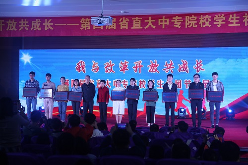 10月31日,由省直团工委主办、安徽职业技术学院团委承办的“我与改革开放共成长——第四届省直大中专院校学生社团节目展演”在安徽职业技术学院举行,省直机关工委副书记李友平,团省委副书记张敏,安徽职业技术学院党委书记亓四华,团省委学校部副部长马志华,省直团工委书记王永娟,安徽职业技术学院党委委员、副校长陈行,省直团工委副书记胡海出席活动并分别为“十佳学生社团”和“优秀学生社团”颁奖。省直有关单位团委书记、各大中专院校团委负责人、学生社团负责人和学生代表共500余人参加了活动。