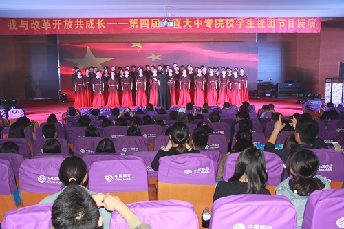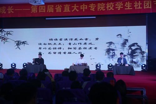 各学生社团自编自演的展演节目主题鲜明、精彩纷呈。开场舞《给力青春》、健美操《向快乐出发》活力四射,舞动青春旋律。舞台剧《春雷》激励广大团员青年勇立时代潮头,以青春之我,创青春之国家。茶艺表演《三癸亭 三贤》、书法琵琶表演《古韵悠扬香墨飞》、武术表演《武动青春》、黄梅戏联唱《谁料皇榜中状元》《夫妻双双把家还》等彰显了青年学生对中华传统文化的热爱与追求。校园民谣《儿时》舒缓优美、童趣盎然。礼仪展示《尚礼中华 仪满天下》生动展示了文明古国的礼仪文化和现代传承。歌伴舞《千山万水》、舞蹈《盛世鸿姿》反映了青年学生对梦想、对美好未来的执着追求。警务技能展示《警魂》突显高职院校培养专业技术型人才的鲜明特色,极为震撼。最后,原创诗朗诵《为改革开放为美好安徽歌唱》、大合唱《新时代进行曲》热情讴歌了我省改革开放40年来取得的辉煌成就,深切抒发了青年学生与改革开放共成长、感受幸福新时代的真挚情感,将活动推向了高潮。整场活动通过多种形式、从多个角度反映了近年来省直大中专院校学生社团建设的丰硕成果,生动展示了青年学生阳光自信、积极进取的精神风貌,集中表达了新时代广大团员青年誓将改革开放进行到底、为建设现代化五大发展美好安徽贡献青春力量的信心决心。现场气氛热烈,不时响起阵阵掌声。