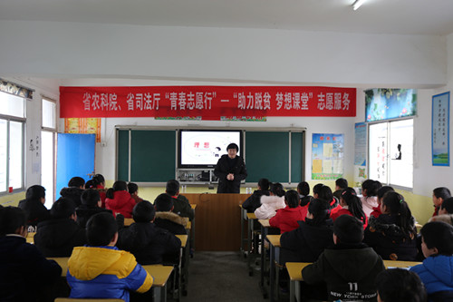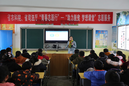 3月1日,省农科院与省司法厅团委联合组织青年志愿服务队,赴省农科院结对扶贫村太湖县徐桥镇桃铺村开展“助力脱贫·梦想课堂”青年志愿服务活动。省农科院、省司法厅团组织负责同志、青年专家及省农科院驻村扶贫工作队共16人参加活动。