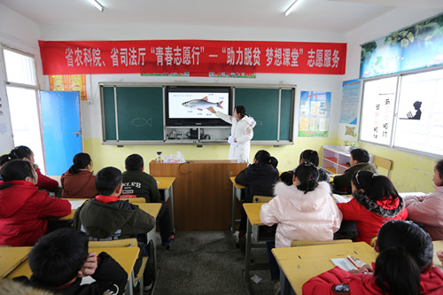 活动中,省农科院及省司法厅青年专家,为桃铺村小学学生教授了《“与法同行”反校园欺凌专题讲座》、《远离毒品 快乐成长》、《科学理想》及《鱼类知识小课堂》等课程。志愿者们通过视频讲解、趣味问答、实物展示等方式,进一步引导未成年人加强自我保护、远离毒品侵害,树立远大理想,发奋学习,用知识建设美好家乡。一节节课程上下来,孩子们听得都很认真,一张张小脸上写满了开心。活动结束后,孩子和老师们表示,“梦想课堂”给他们打开了一个新的窗口,受益匪浅。