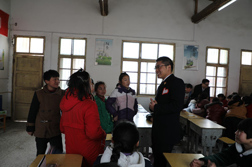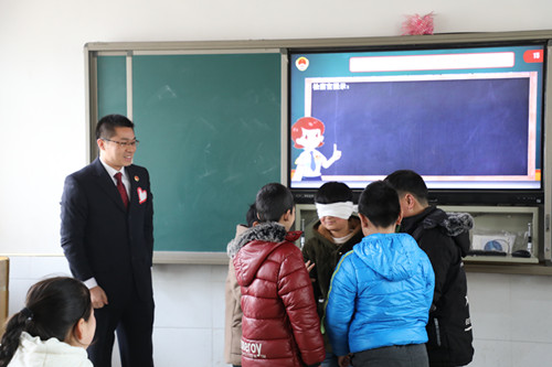 “别害怕、别慌张,用力大声喊,跑到人多的地方······”熟悉的旋律,明快的节奏,耳目一新的形式,改编的歌曲《青春保护守则》迅速吸引了孩子们注意,调动了孩子们的积极性。针对农村留守儿童易受侵害的情况,程先锋通过漫画、故事、互动游戏等形式,向同学们传授了自己拥有哪些权利、如果权利受到侵害应该如何应对等法律知识。针对社会广泛关注的校园暴力问题,程先锋通过微电影、真实案例、体验式教学等生动的讲解方式, 为同学们带来内容丰富的法治大餐,在与同学们的交流互动中,让他们了解校园暴力的危害,引导他们远离校园暴力,学会自我保护。下课了,同学们依依不舍地将“检察官老师”程先锋、徐昊宇团团围住,请教他们自己学习生活中遇到的问题和困惑。