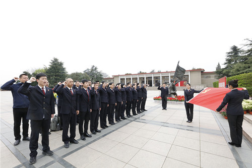 在革命烈士纪念碑前,干警们举行了庄严的祭奠英烈仪式,青年干警代表向烈士纪念碑敬献花篮,全体肃立,向纪念碑三鞠躬并默哀,全体党员干警面向党旗,庄严宣誓,再一次重温入党誓词。