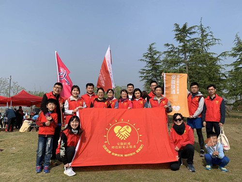 2019年4月13日上午,安徽联通橙色阳光志愿服务队的31名志愿者参加了由青海格桑花教育救助会组织2019年“行走的格桑花—官亭林海公益徒步活动”,共计捐款2869元。