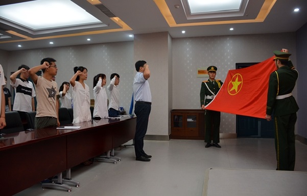 校团委副书记张姝雅首先说明入团仪式的重要意义并宣读2019年新团员名单。全体新团员在校团委书记尹程带领下,面向鲜红的团旗,右手握拳、手举过肩,以最洪亮的声音庄严宣誓。张磊同学作为新团员代表进行发言,他表示,他以成为一名共青团员而感到光荣,并号召全体新团员今后要艰苦奋斗、用心进取,时刻不忘共青团员肩上的责任与担当。林婉妮同学代表老团员讲话,她首先对新团员表示祝贺,并希望他们能时刻以团员的标准严格要求自己,刻苦学习、砥砺前行,与老团员一起,为共青团以及国家的发展贡献青春力量。