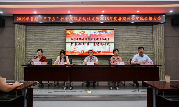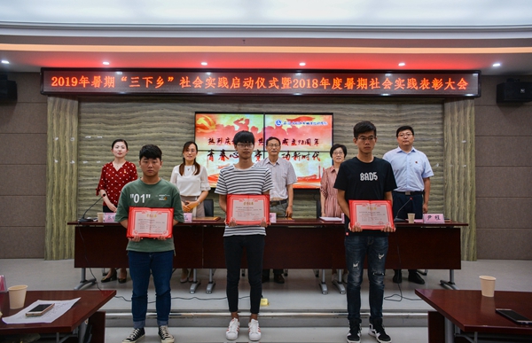 启动仪式上,校团委公布2019年暑期“三下乡”社会实践活动团队名单,宣读校党委2018年度暑期社会实践先进团队及个人表彰名单。