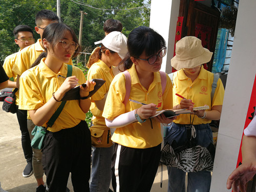 在巢湖市槐林镇,队员们参观了爱国主义教育基地——胡海如纪念馆,参加了镇政府“我和我的祖国”视频拍摄,接受了巢湖市贫困人口医保政策宣讲会现场学习,走访了美丽乡村——大汪村,深入了解了中国渔网第一镇的渔网产业发展、旅游资源开发、美丽乡村建设、精准扶贫工作开展等情况。在大汪村、惠峰村、万年村、官塘村等4个村,队员们协助村委整理档案和资料、填写农户信息登记表,并对当地村民进行走访,队员们认真完成各项工作,受到村干部的一致好评,他们也在实践中亲身体会到党的精准扶贫政策给农村带来的新变化,近距离感受到广大扶贫干部的奉献精神和老百姓对扶贫工作的认可。