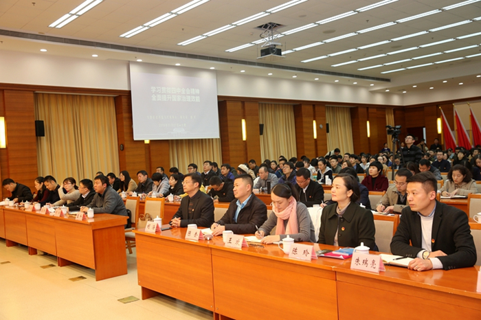 11月27日下午,省政协小礼堂内座无虚席、掌声不断,这里正举办省直机关青年学习党的十九届四中全会精神报告会暨第一期“青年理论学思汇”。来自省直机关的240余名团员青年汇聚一堂,认真聆听党的十九届四中全会精神辅导报告,交流分享学习体会。此次活动由省直团工委主办、省政协机关团委协办,是省直机关青年理论学习e家的一次线下活动,旨在进一步学习领会党的十九届四中全会精神,深刻理解中国特色社会主义制度的历史逻辑、理论逻辑、实践逻辑,持续推动青年理论武装工作走深走实,更加自觉地增强“四个意识”、坚定“四个自信”、做到“两个维护”。