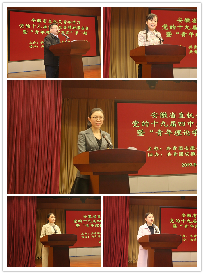 省水利厅直属机关团委书记赵梅在发言中谈道:“作为一名共青团干部,我们要积极争当学习贯彻党的十九届四中全会精神的示范者、组织者,紧密结合大抓团的基层建设、大抓团的思想政治引领工作实际,运用好青年理论学习e家平台,把制度自信的种子播洒进广大团员青年的心田。”