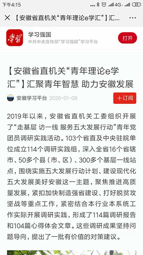 2019年以来,安徽省直机关工委组织开展了“走基层 访一线 服务五大发展行动”青年党团员调研实践活动。103个省直及中央驻皖单位成立114个调研实践组,深入全省16个省辖市、50多个县(市、区)、300多个基层一线站点,围绕实施五大发展行动计划、建设现代化五大发展美好安徽这一主题,聚焦推进高质量发展,紧扣加快制造强省建设、打好脱贫攻坚战等重点工作,紧密结合本行业本系统工作实际开展调研实践,形成了114篇调研报告和104篇心得体会文章。这些调研成果坚持问题导向,提出了一批有价值的对策建议。