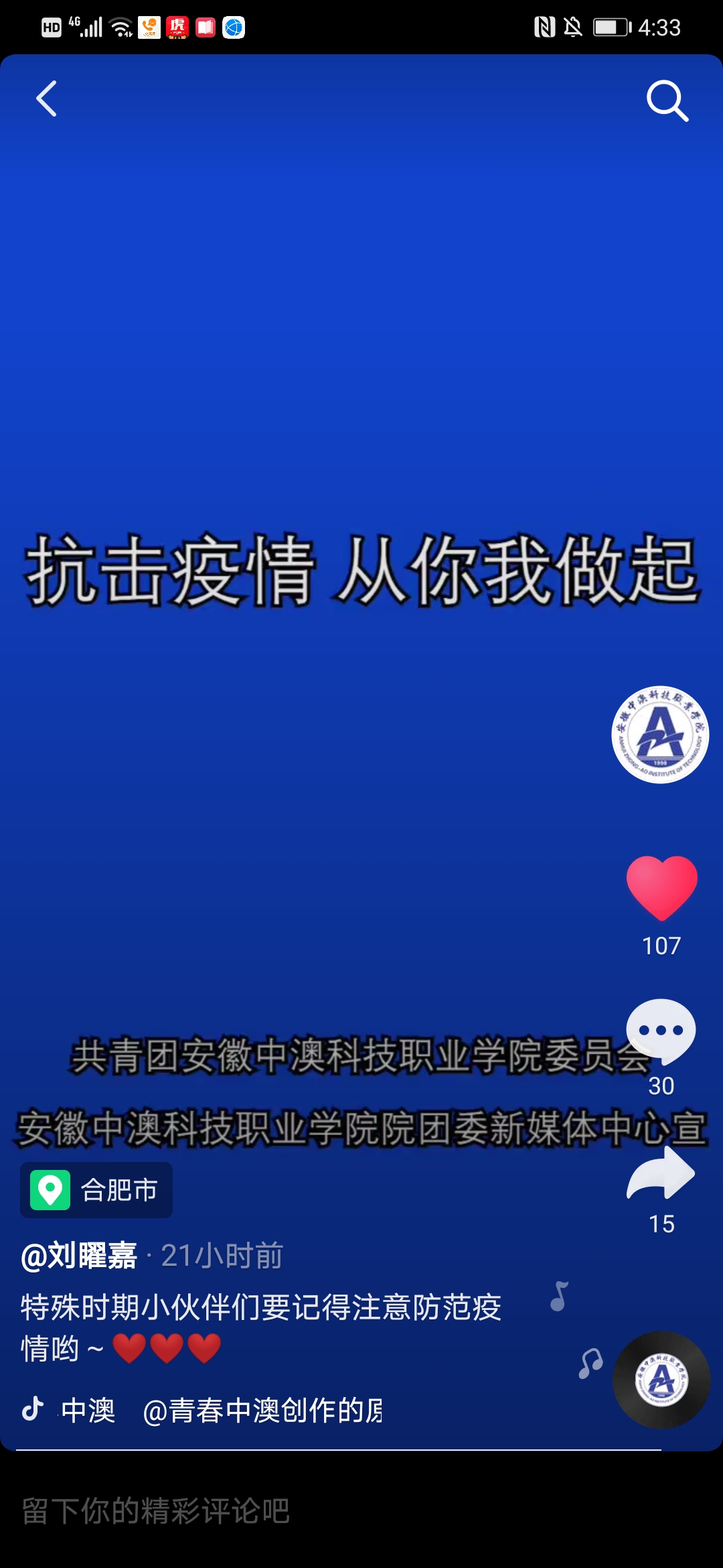 安徽中澳科技职业学院积极开展防疫线上宣传工作
