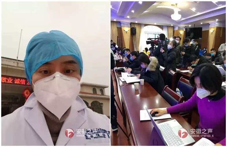 农历大年初二,在参加安徽省首场新型冠状病毒感染的肺炎疫情防控新闻发布后,李娜继续留在现场工作,和后方的新媒体编辑协同配合,以最快的速度通过短视频、文字、音频、图表、图片等方式将安徽省抗击疫情的权威消息准确、及时发布出去,做到了一次采集,多渠道多频次分发。之后又冒着漫天大雪回去编写广播录音稿件直至深夜,第二天一大早,她又前往中国科大附一院(安徽省立医院)采访援鄂首批医疗队出征。