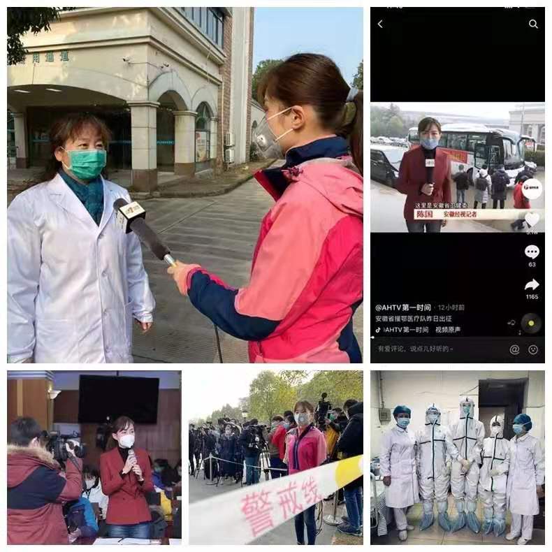 大年初二,陈国迅速投身抗疫新闻战线,三天时间里采制“抗击新型肺炎在行动”——《我省16个市均有确诊病例 疫情阻击战正在进行》《安徽省援武汉医疗队今日出征》《省经信厅发布 疫情应急物资保障工作进行中》《省卫健委发布 我省新增10例确诊患者》《援武汉医疗队顺利到达 先培训再展开工作》等5个系列报道,并通过新媒体平台实时发布,准确权威展示安徽省抗击疫情和支援武汉实况。年初五,她又奔赴安徽省立医院传染病院,采访报道我省首例确诊病例治愈出院信息,及时传播振奋人心的消息。